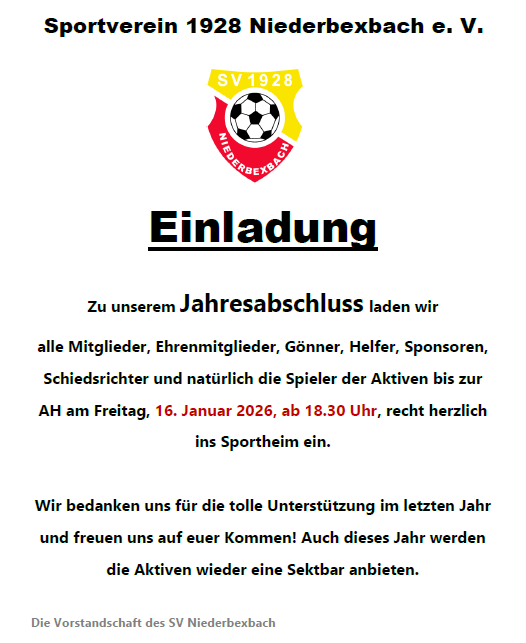 Die Aktiven starten am Dienstag, 20. Januar, in die Vorbereitung für die Saison 25/26 mit einer Trainingseinheit auf dem eigenen Platz (falls es das Wetter zulässt). Es folgen Spinning-Einheiten in der Sportarena Lichtburg sowie der Soccerarena in Kaiserslautern. Zudem stehen einige Testspiele auf dem Plan. Zu finden ist der Vorbereitungsplan auf unserer Homepage. Die Termine findet man auch im Kalender. Highlight im Januar sind sicherlich die Stadtmeisterschaften der Aktiven, AH und der Jugend im Sportzentrum Homburg-Erbach vom 24.-25. Januar. Die genauen Spielpläne werden zeitnah auf der Homepage veröffentlicht. Im Winter konnte der SVN noch vier Spieler verpflichten. Vom FC Palatia Limbach II kommt Francisco Schindler. Außerdem neu sind Björn Kunz (SG Krottelbach), Steven Tober (Borussia Neunkirchen II) und Marc Bambach (zuletzt SV Kohlhof). Des Weiteren teilt der SVN mit, dass an Fasching wieder eine Faschingsparty im Sportheim steigt. Termin ist der 14. Februar. Weitere Infos werden folgen. |