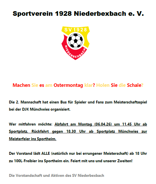 Im Spiel gegen die Reserve des Verbandsligisten wurde der SVN kalt erwischt. Nach einem Patzer von Dennis Collissy kam der SVF durch Mohammed Zatima zum 0:1 (1.). Der SVN sammelte sich und hätte dann sofort ausgleichen können. Dominik Backes setzte Henri Weiss mit der Hacke in Szene, der die Kugel aber frei vorm Keeper neben den Kasten setzte (5.). Kurze Zeit später ergaben sich für die Heimelf zwei weitere Möglichkeiten zum Torerfolg, die aber leider ungenutzt blieben. Zu Beginn der zweiten Hälfte stellte Coach Weimann auf Dreierkette um, was dazu führte, dass seine Elf deutlich dominanter wurde. In der 52. Minute dann eine scharf getretene Ecke von Weimann – Steven Meier musste nur noch wuchtig einköpfen und es stand verdientermaßen 1:1. Kurze Zeit später wurde der Mut, nach vorne zu spielen, belohnt: Dominik Backes traf stark zum 2:1 (56.). Bis zur 70. Minute war der SVN weiter am Drücker und zeigte ein sehr gutes Fußballspiel. Leider verpasste man es, weitere Treffer zu erzielen. Oftmals war man beim Abschluss zu ungenau. Furpach blieb wachsam und kam tatsächlich noch zum Ausgleich. Jakob Schlicker stellte mit seinem 8. Saisontreffer auf den 2:2-Endstand. Die 2. Mannschaft kam in ihrem Testspiel gegen den SV Kohlhof zu einem starken 9:1. Torschützen waren Steven Tober (3), Daniel Küster (2), Luis Johnson (2), Felix Scherer und Coach Victor Bialecki. Die AH holte am Samstagabend gegen den SV Furpach ein 3:3. Das Spiel der D-Jugend beim SV Kirkel wurde auf den 28. April (17.45 Uhr) verlegt. Die E1 verlor unter der Woche gegen die SG Höcherberg III mit 3:1 und holte am Samstag zu Hause gegen den FC Palatia Limbach III einen 3:1-Sieg. Die E2 unterlag bei der DJK Elversberg mit 5:0. Am Ostermontag sind beide aktiven Mannschaften im Einsatz. Dabei kann die 2. Mannschaft bei einem Sieg die Meisterschaft feiern. Sie beginnt ihre Partie bei der DJK Münchwies um 13.15 Uhr. Die Erste startet um 15 Uhr. Die Jugend-Teams sind am Wochenende spielfrei. |